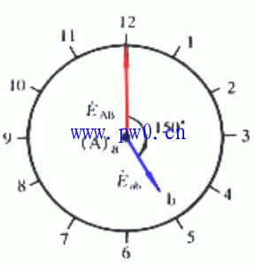 实际变压器高低压侧对应线电压之间的相位差一般为0o,30o,60o,90o,120o,...150o,300o,330o。正好对应于钟表盘上的12个位置。