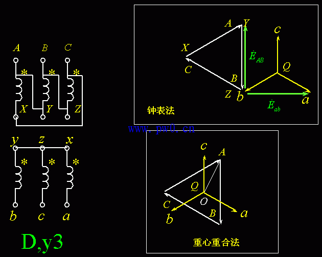 III.原、副方的相序要正确,即顺钟向读a.b.c.或A.B.C(也含x.y.z等)。
