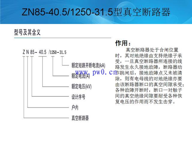 工频耐压Ud:95kV 短路开断电流:31.5kV