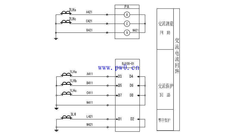 从下图可以看出。需要接入的CT模拟量为A、B、C、相电流。(当然有些工程中接入的是A、C两相,不完全星形法)微机保护装置上也可以显示出一次电气量,电气量取自保护级。如果对精度有特殊要求。可以取测量级串接电流表既可。