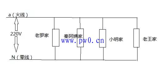 假如我们简单地把每个家庭都看成是一个电阻的话,那么就可以看到下图这个情况: