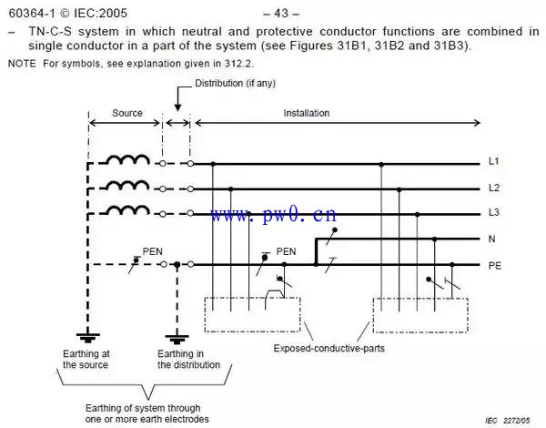 我们来看IEC60364-1中给出的有关TN-C-S的图: