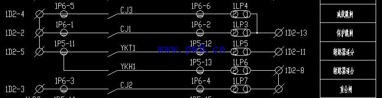 在正常情况下1P6-1接公共端,CJ1为常开(断开),当发生故障时,装置会使CJ1闭合,导致正点从1P6-1通过该接点,经过压板1LP3到达端子1D2-13,然后经过与开关机构的接线配合实现了开关的跳闸。