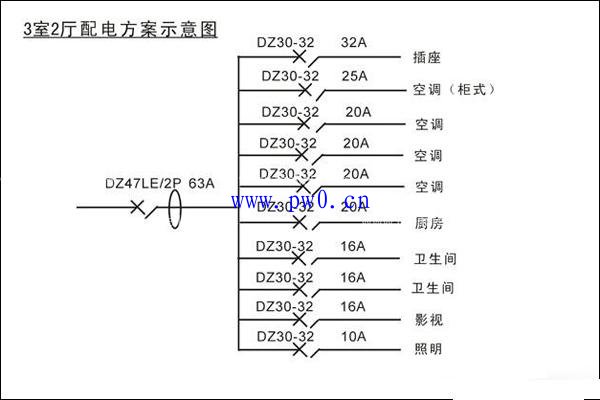 简介配电箱线路图识图讲解 一般来讲,根据家庭户型的不同,家庭配电箱线路图也略有差异。下面我们分别针对两室一厅和三室两厅的户型为您呈上不同的家庭配电箱线路图。 开关选用2