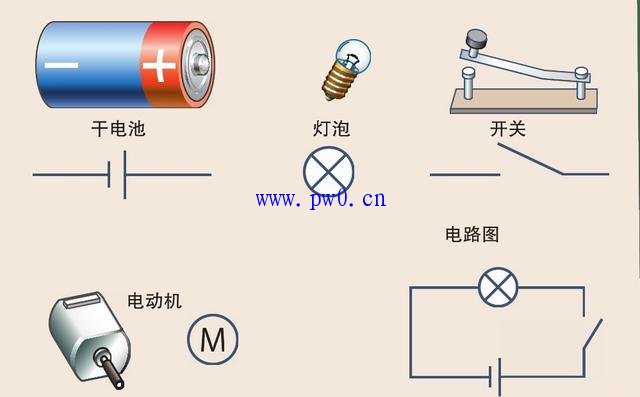 为了用插图来表示电路,用规定的电路图符号来代表干电池、灯泡、开关等。用电路图符号来表示实际电路的图称为电路图。记住电路图符号的话,就能够用插图来表示电路了。