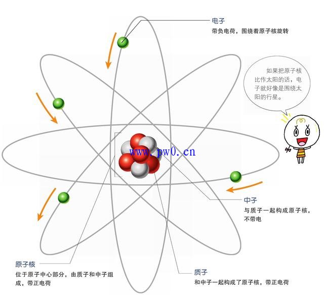 地球上所有的东西,都是由原子这种小小的粒子构成的。在原子的中心有一个由中子和质子组成的原子核。在这个原子核的周围围绕着一种被称为电子的微粒,其数量和质子一样。