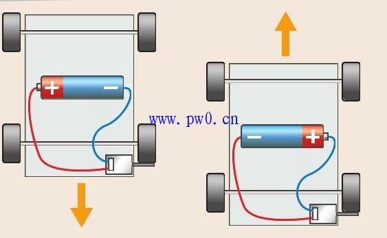 如果改变干电池的正极和负极,流入电动机的电流方向也会发生改变,从而改变电动机转动的方向。这时候,汽车就会朝相反的方向前进了。