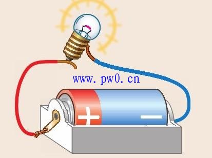 电流通过钨丝后,电灯泡就发亮。一旦切断电路,不管是断开哪一段的电路,电灯泡都不会发亮。