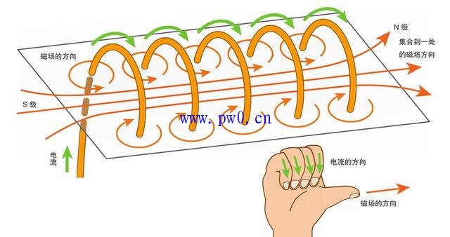 如果把电流方向比作四指所指的方向的话,磁场的方向就是大拇指指向的方向。