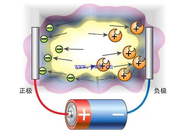 给等离子体加压后,电子会移动到正极,正离子会移动到负极,从而产生了电流。