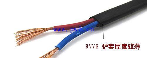 因为在扁形RVVB的横切面的护套厚度并没有RVV电源线的护套厚度大,抗拉性和抗压性都没有RVV电源线好。