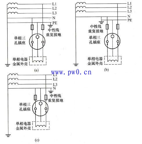 2)图2 (c)适用于三相四线制保护接零系统中