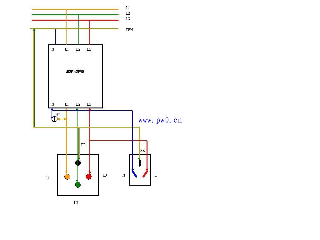 接线的时候要是标准的电线颜色,那么就,左黄,下绿,右红;最上面是黄绿。