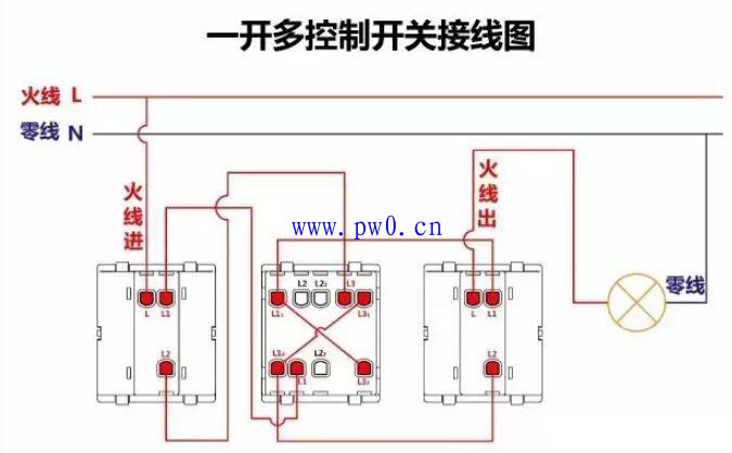 一个灯三个开关接线图