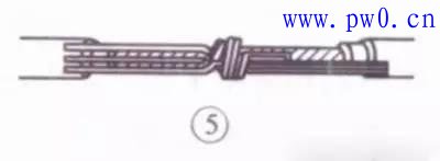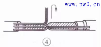 5)接着把这两股芯线按顺时针方向紧缠2圈后,再折回90°并平卧在折起前的轴线位置上。