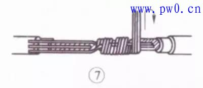 7)把余下的3根芯线按步骤⑤方法缠绕至第2圈时,把前4根芯线在根部分别切断,并钳平;