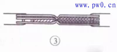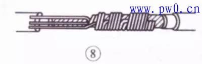接着把3根芯线缠足3圈,然后剪去余端,钳平切口不留毛刺。