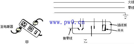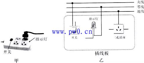 (1)在乙图画出插线板内部开关和两插座的连线,并接入家庭电路,要求:①插线板上的开关可同时控制两插座的通、断②开关接通时两插座都能提供220V电压.