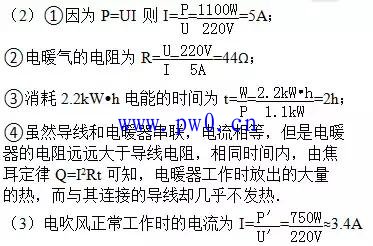 分别求出额定电压下的电流、电阻和消耗电能的时间;利用焦耳定律解释导线不热的原因;