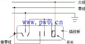 (2)安装三孔插座的方法:上孔接地线,左孔接零线,右孔接火线;