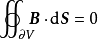 由于磁力线总是闭合曲线,因此任何一条进入一个闭合曲面的磁力线必定会从曲面内部出来,否则这条磁力线就不会闭合起来了。如果对于一个闭合曲面,定义向外为正法线的指向,则进入曲面的磁通量为负,出来的磁通量为正,那么就可以得到通过一个闭合曲面的总磁通量为0。这个规律类似于电场中的高斯定理,因此也称为高斯定理[4] 。