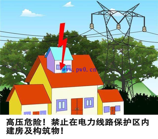 架空电力线路保护区,是为了保证已建架空电力线路的安全运行和保障人民生活的正常供电而必须设置的安全区域。在厂矿、城镇、集镇、村庄等人口密集地区,架空电力线路保护区为导线边线在最大计算风偏后的水平距离和风偏后距建筑物的水平安全距离之和所形成的两平行线内的区域。各级电压导线边线在计算导线最大风偏情况下,距建筑物的水平安全距离如下: