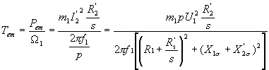 物理表达式说明了产生电磁转矩的条件,所推导出的转矩表达式也具有明显的物理意义,然而,在对电机进行具体分析时通常希望表达式能直观地反映外加电压、电机参数对转矩的影响,也希望能反映出在不同转差率时转矩的变化规律,因而有必要推导出电磁转矩的参数表达式。