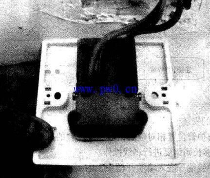2)再将多余的电线盘绕,在进行固定时,由于加装了防潮盖,需要选择长度适合的木螺钉安装到插座的固定点进行固定。