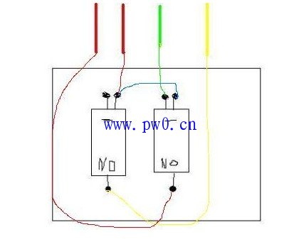 答案:上图所示的双联二位墙壁开关的接法,可以用如下图的接法来接。下面就来看看接线图吧: