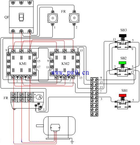 四、电动机正向(或反向)启动运转后,不必先按停止按钮使电动机停止,可以直接按反向(或正向)启动按钮,使电动机变为反方向运行。