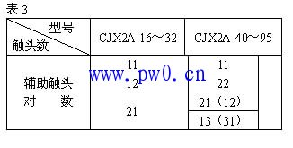 5.辅助触头对数(表3)