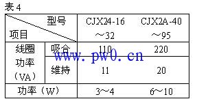 6.接触器线圈参数(表4)