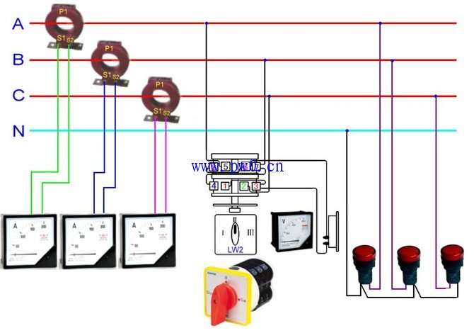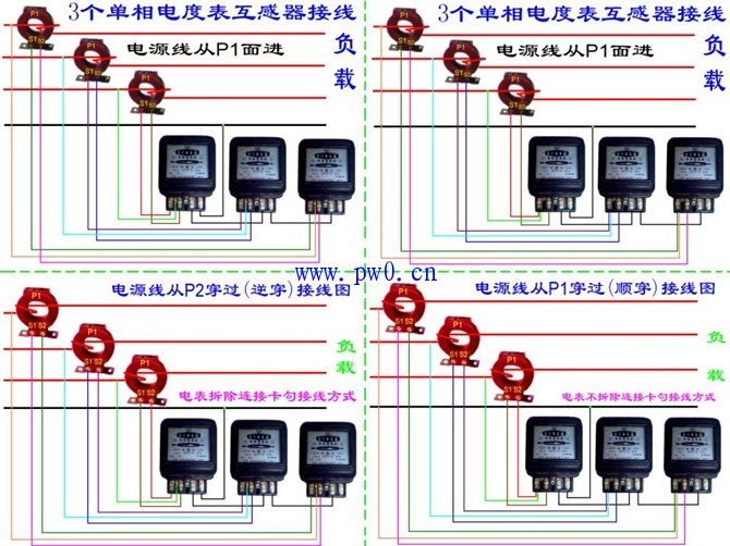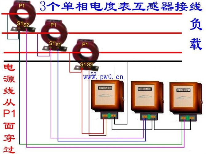 3个单相电度表互感器接线