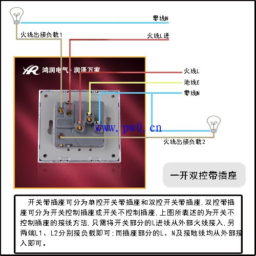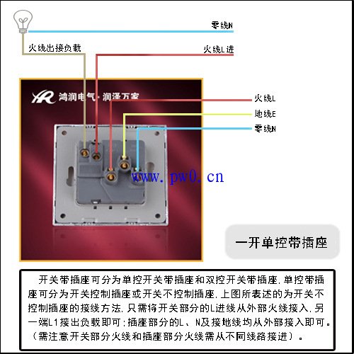 2、单相两孔插座的安装接线,当孔眼竖向排列时为上火下零,横向排列时为左零右火。
