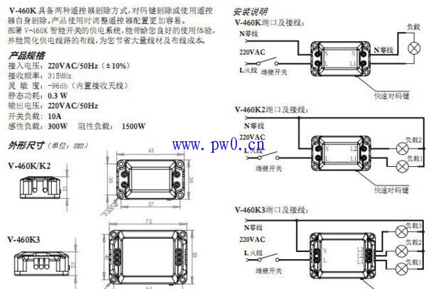 (2)遥控电路安装要注意零火线,把多路接收装置开关是与照明的火线连接。