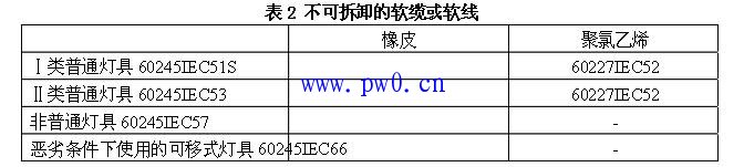 应根据灯具的类型选择软缆或软线,并不低于表2的规定。