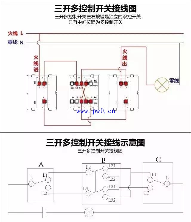 您现在的位置是:首页 > 电气技术 > 电气技术 三控开关实物接线图 来源:艾特贸易2017-03-18 简介三控开关实物接线图 标识为L,L1,L2,在有一些品牌中,开关背后的标识为COM,L1,L2,除了标注的文字不同外,其余都一样。 三控开关实物接线图 标识为“L,L1,L2”,在有一些品牌中,开关背后的标识为“COM,L1,L2”,除了标注的文字不同外,其余都一样。 相关文章 行程开关及工作原理 接近开关 刀开关的介绍跟种类 转换开关 开关电源电路的检测技术方法 室外机开关电源电路的结构和电路分析 点击排行 室内风扇电机和霍尔元件的检测 桥架90度弯头制作图解" 桥架45度弯头制作图解" 不动电表最简单偷电法" 开关l1l2l3怎么接电线?单控l1l2l3开关怎" 土建电工图纸符号大全" 日光灯功率因数的提高实验报告" 宝马拆装完发动机气门室盖无法启动" 东菱面包机电机不转故障维修方法" 本栏推荐 室内风扇电机和霍尔元件的检测 什么是力矩电动机,怎样选择 如何利用反变形来控制焊接残余变形 如何进行焊接接头的冲击试验 什么叫电源 简单串联型稳压电路及稳压原理 抗晃电交流接触器的工作原理是什么 微机保护运行的主要规定 如何进行钢与铜及铜合金的焊接 电烙铁如何修理?电烙铁不发热的问题 什么是多模光纤
