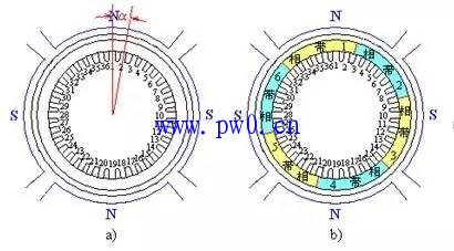 a)槽距角 b)相带