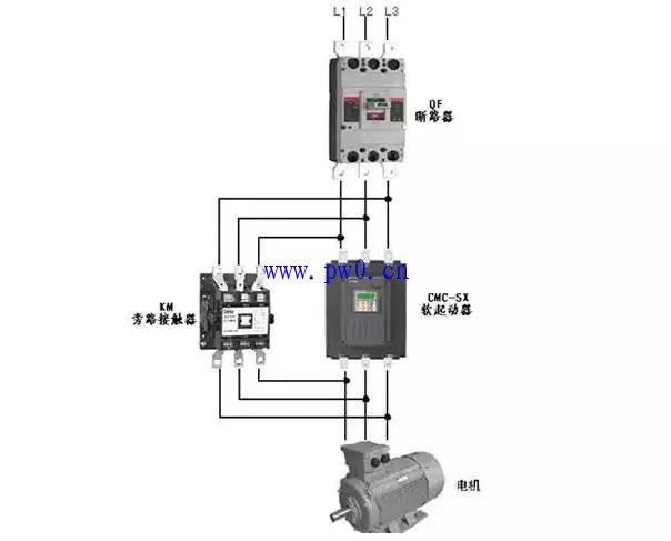 3、CMC-L系列数码型电机软启动器典型应用接线图: