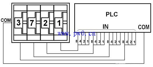 输入采用拨码开关时,可采用下节将介绍的分组输入法或矩阵输入法,以提高PLC输入点的利用率。