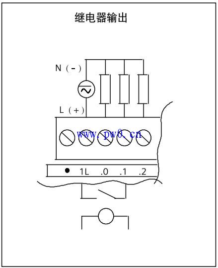 继电器输出可以驱动交流负载,也可以驱动直流负载。负载电源由外部提供。