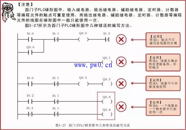 图3-26 西门子PLC梯形图中线圈的编写原则