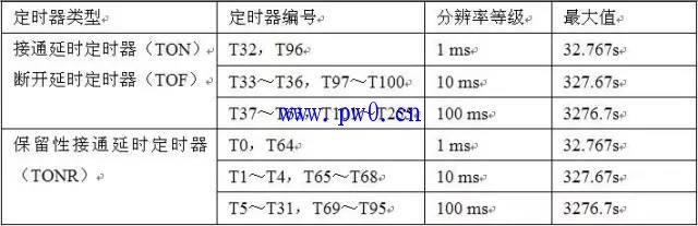 表3-3 西门子S7-200定时器号码对应的分辨率等级及最大值等参数