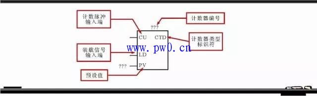 在西门子S7-200系列PLC梯形图中,减计数器的图形符号及文字标识含义如图3-19所示,其中方框上方的“???”为减计数器编号输入位置,CD为计数脉冲输入端,LD为装载信号输入端,PV为脉冲设定值输入端。