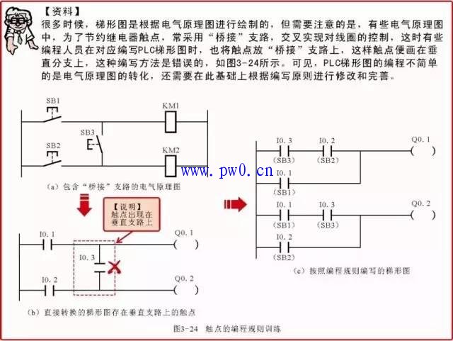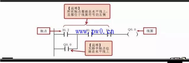 图3-23 西门子PLC梯形图中触点的编写原则