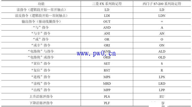 三菱FX系列和西门子S7-200系列PLC中常用的助记符