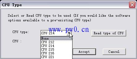 (2)利用Configuration|CPU Type选择合适的CPU类型,如附图2所示。(仿真软件不同类型的CPU支持的指令略有不同,某些214不支持的仿真指令226可能支持)
