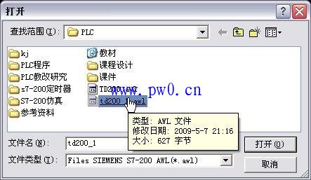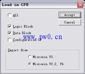 点击Accept按钮,从文件列表框分别选择awl文件和文本文件(数据块默认的文件格式为dbl文件,可在文件类型选择框中选择txt文件),如附图6所示。