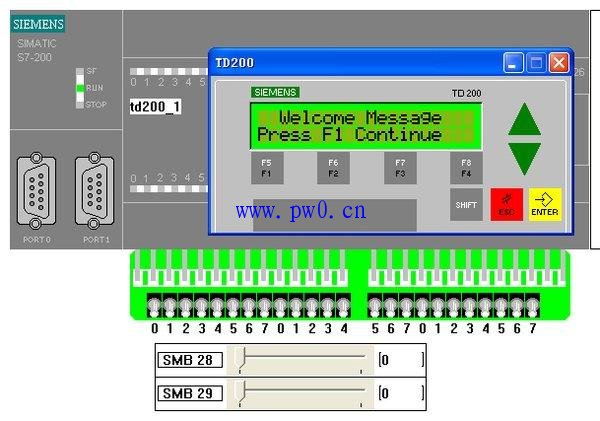 该仿真软件可以仿真大量的S7-200指令(支持常用的位触点指令、定时器指令、计数器指令、比较指令、逻辑运算指令和大部分的数学运算指令等,但部分指令如顺序控制指令、循环指令、高速计数器指令和通讯指令等尚无法支持,仿真软件支持的仿真指令可参考)。仿真程序提供了数字信号输入开关、两个模拟电位器和LED输出显示,仿真程序同时还支持对TD-200文本显示器的仿真,在实验条件尚不具备的情况下,完全可以作为学习S7-200的一个辅助工具。
