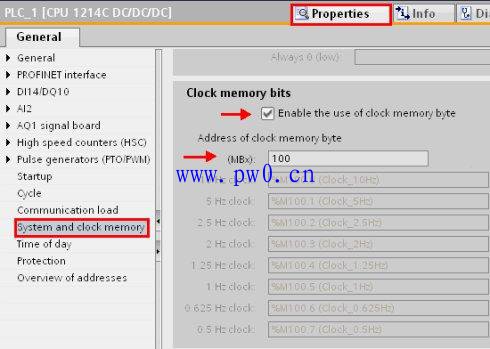 3、勾选“Enable the use of clock memory byte”选项并为时钟标志选定一个字节的地址;比如,“100”表示 MB100。时钟标志的每一位将被分配为不同频率的脉冲信号。